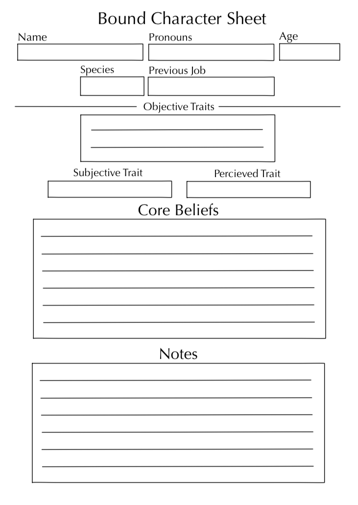 Here's the sheet!! I used the notes section to add extra personality details for my characters.